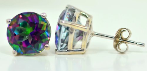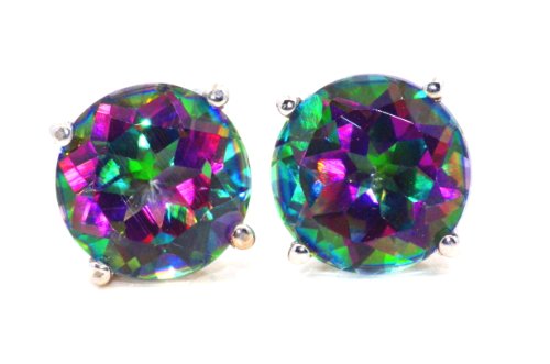 (Price Hidden)4 Carat Natural Mystic Topaz Stud Earrings .925 Sterling Silver Rhodium Finish