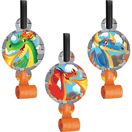 -. Feature : 8-Count blowout party favors / 5.25 x 2.55-Inches / Blowouts embellished with an assortment of Dragon medallions / Look for Dragon tableware, party decorations and coordinating solids fresh lime and Sunkissed orange / Create a medieval fairytale setting for young Knights and P.R.Incesses, great for a birthday party, dragon-themed dress up or classroom party
