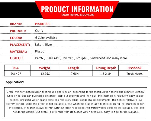 ECO-FRIENDLY MATERIAL - With High Performance ABS Material, Which Offers Odor-free and Reusable Fishing Lures, Proberos Top-water Crank-baits Is Unmatched in QUALITY and DURABILITY.