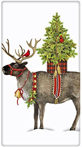 Christmas Reindeer Potted Tree 100% Cotton Flour Sack Dish Tea Towel - Mary Lake Thompson 30" x 30"