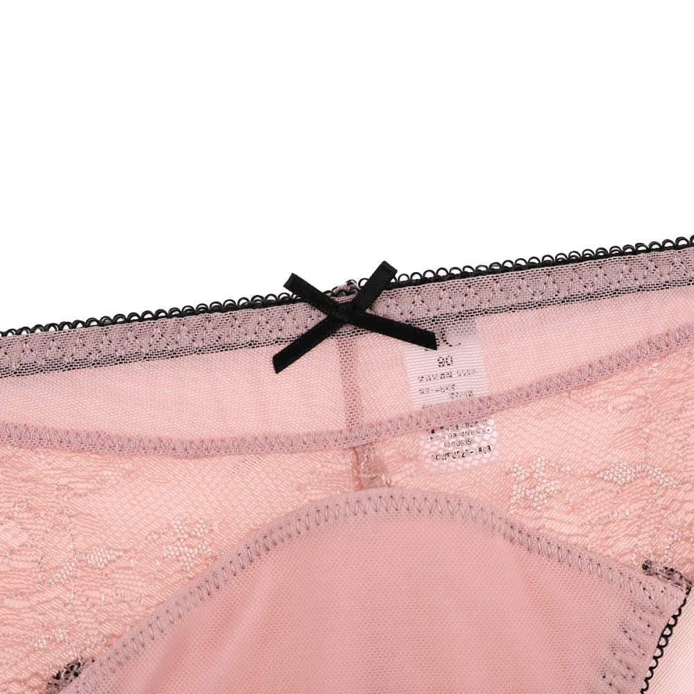 *디자인요소 : 우아한 핑크컬러 레이스 팬티제품. 레이스스칼럽을 살려 페미닌하고 로맨틱한 느낌으로 연출하였으며 블랙컬러와 매치하여 고급스러운 컬러매치가 돋보이는 제품.