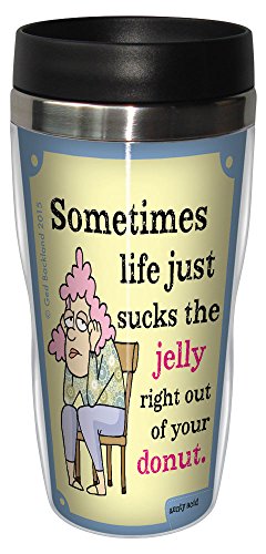 Tree-Free Greetings 16-Ounce Sip 'N Go Stainless Lined Travel Mug, Aunty Acid Jelly Donut (SG78393)