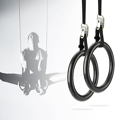Gymnastic Rings with Adjustable Straps,Premium HEAVY DUTY for Full Body Strength and Crossfit Training,Gymnastics,Exercise and Fitness Rings (Black)