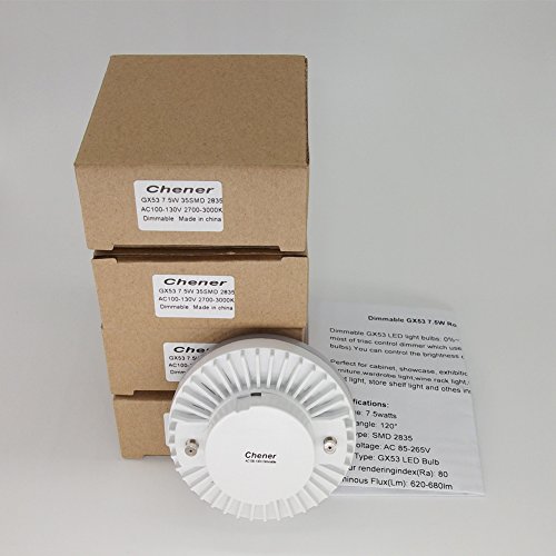 - Dimmable GX53 LED light bulbs: 20%~100% dimmable, dimmable(compatible with most of triac control dimmer which used for traditional incandescent or halogen bulbs).Please check that if your dimmer switch is compatible with LED bulbs.
