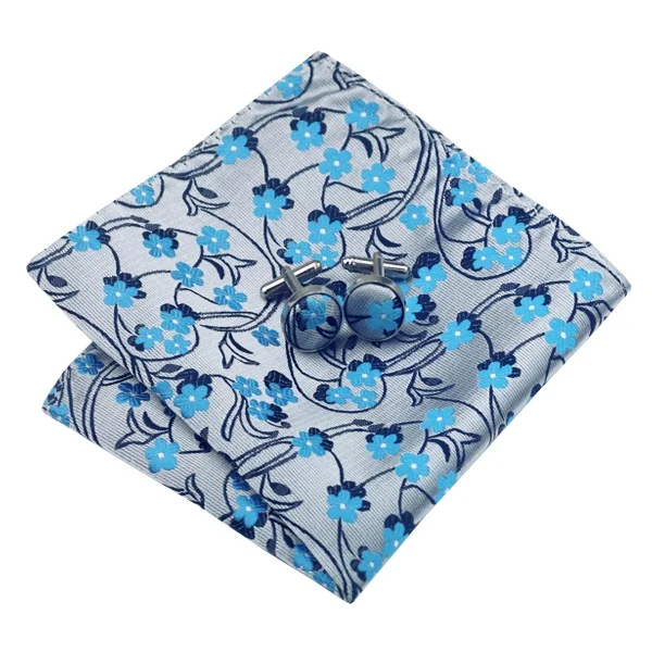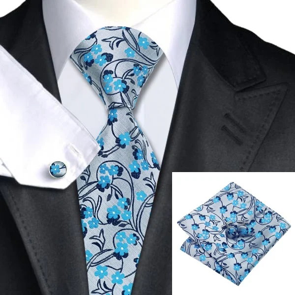 | [해외]SN-999 블랙 블루 그레이 꽃 넥타이 손수건 커프스 세트 남성 100% 실크 넥타이 남성 정장 웨딩 파티 신랑 |