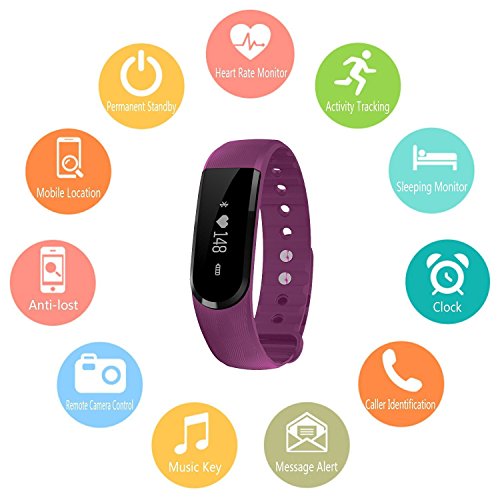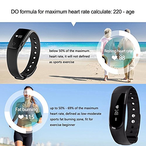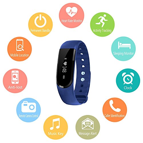 QIMAOO Pulsuhr Fitnessarmband Aktivitatstracker Uhrenarmband ID01 mit Herzfrequenzuberwachung und Blutetooth 4.0 geeignet fur Handy mit Android 4.4 oder daruber sowie IOS 7.1 oder