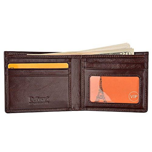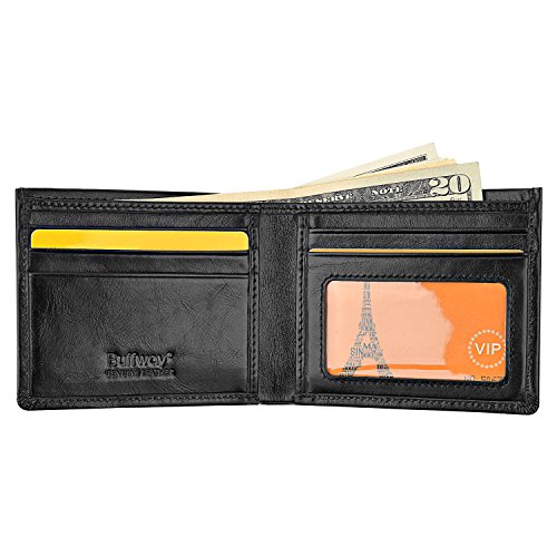 -. Title : Buffway Genuine Leather Slim Minimalist Bifold Wallet for Men & Women – RFID Blocking Sleeves with Clear ID Window, Multiple Card Slots, Cash Pocket & Hidden Compartment