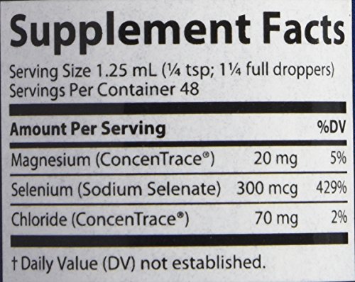 Ionic Single Minerals from Trace Minerals Research combines high quality single mineral ingredients and over 72 trace minerals and elements from ConcenTrace in a unique new proprietary process. This unique blend gives the body the type of minerals that it readily recognizes and absorbs fast because of its liquid Ionic state.Ionic Single Minerals come in a highly concentrated form that is all natural and Vegetarian approved. Most of the Ionic Single Minerals are a 48 day supply of concentrated liquid and come in a convenient 2 oz. travel size bottle.Liquid Ionic Selenium is a rich, yeast-free, concentrated liquid dietary supplement that provides selenium, a trace element, in ionic form-the form most widely recognized by the body. Our proprietary process ensures maximum absorption, while the balanced liquid form provides safety and flexibility. Selenium may reduce the risk of certain cancers. Some scientific evidence suggests that consumption of selenium may reduce the risk of certain forms of cancer, however, the Food and Drug Administration has determined that this evidence is limited and not conclusive.Feature