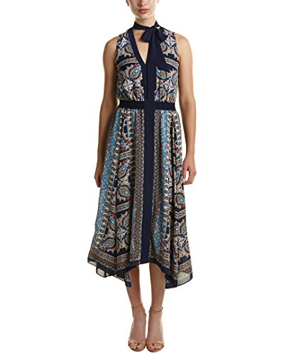 Imagine. A long dress, your favorite shades and the top down on your convertible on a windy day. Crank up the glam in this smooth georgette daytime dress. It's cascading skirt tails let you flow into a room; the tie detail adds a stylish touch and the solid bands flatter your figure. What are you waiting for get your perfect, spring time day dress with laundry BY SHELLI SEGAL.Feature