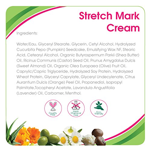 Aleva Naturals Stretch mark Cream is a unique combination of Organic Shea Butter, Olive Oil, Natural Soy Protein, Wheat Protein and Pumpkin Seeds extracts to improve elasticity and skin tone