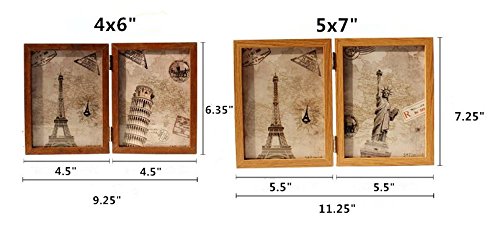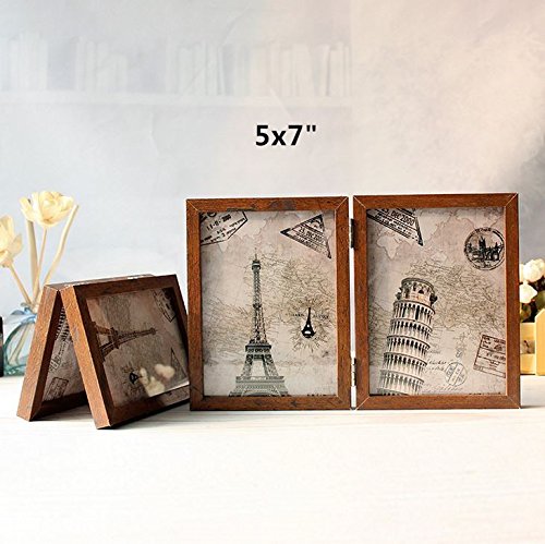 leoyoubei Vintage Feel 2-Opening Hinged Collage Frame, 4 photos show double-sided photo frame silver-color Hinges, Folding Photo Frame With Glass Front (5x7, brown)