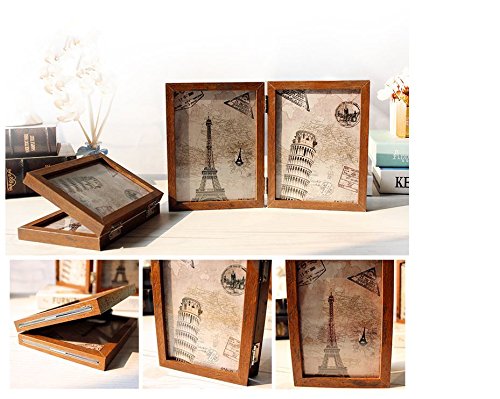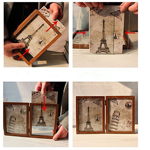 - Retro 2 fold 4 glass frame with,Choose your favorite colors can be replaced with their own photos, each frame can replace 4 photos.