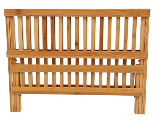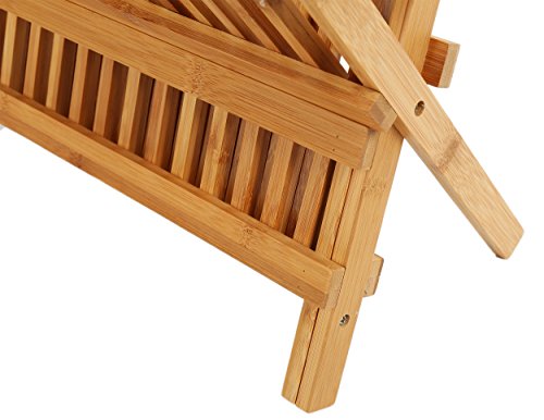Dish Rack - 2 Tier Bamboo Drying Dish Rack for Kitchen - Dry and Store Plates, Cups, and Utensils - Collapsible and Compact - 16 Inches