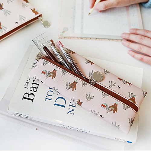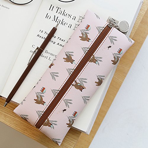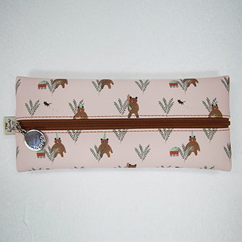INDIGO Willow Pattern Ver.4 Cute & lovely illustration Pattern Zipper Flat Pencil Case (Pink Bear)
