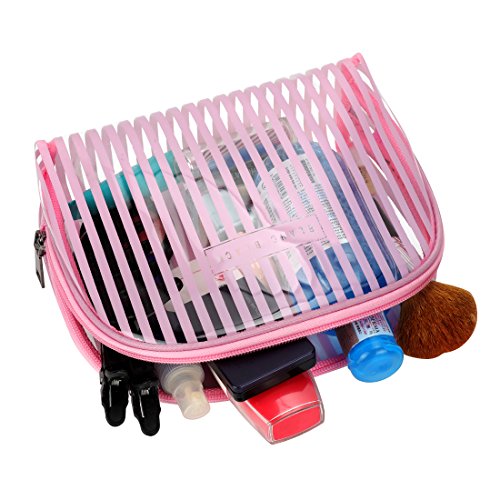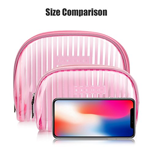 LazyBear Transparent Pink Travel Makeup Bag Pouch,Clear Cosmetic Bag Set, PVC Plastic Large Toiletry Bag Case Kit Waterproof Bathroom Travel...