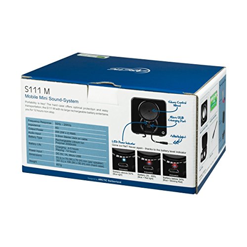 Arctic S111 M Mobile Mini Stereo USB Sound System with 2 x 2 W RMS Integrated 2000 mAh Lithium Polymer Battery - Retail Packaging - Black