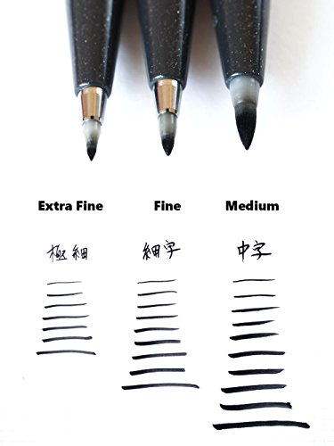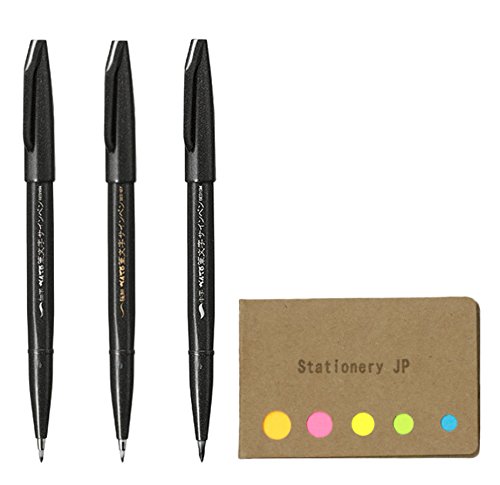 Pentel Fude Touch Brush Sign Pen, 3 Types Assorted (Medium/Fine/Extra Fine ), Black Ink, Sticky Notes Value Set