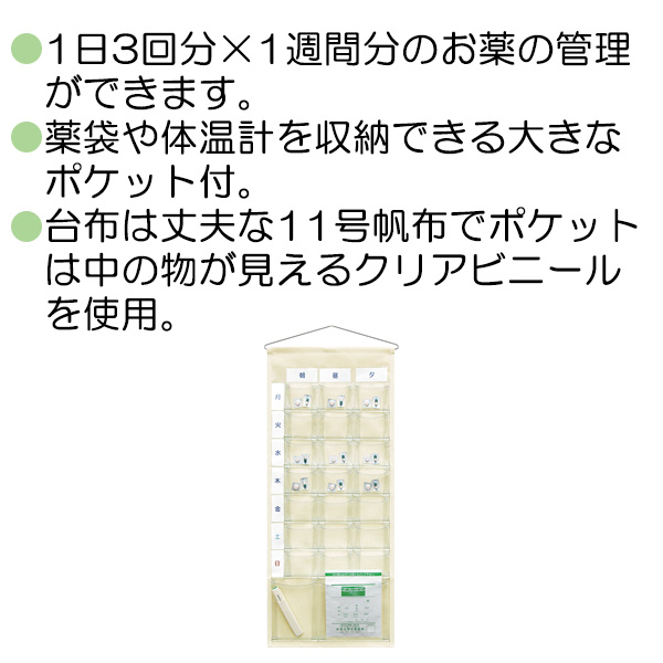 ●薬袋や体温計を収納できる大きなポケット付。