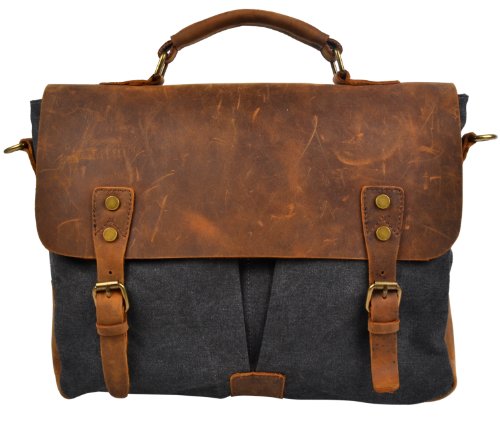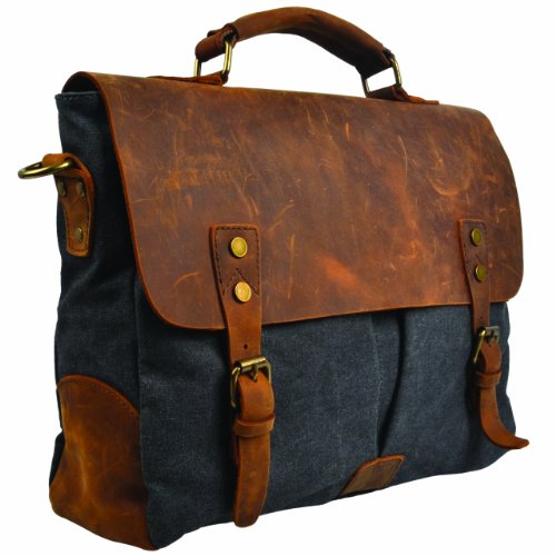 - Title : Hynes Eagle Men's Vintage Cool Leisure Business Canvas Genuine Leather Laptop Messenger Handbag/Briefcase
