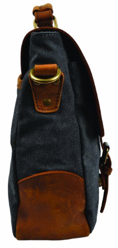 - Feature : Made of high density canvas and genuine leather / Retro style design, well sewn craftsmanship / Ample room for 14 inches laptop, iPad, A4 size files and other necessities / Bronze-tone buckles detail, durable top handle and adjustable shoulder strap for easy carrying / Approx. Dimensions: 14.2''L x 3.9''W x 11.0''H