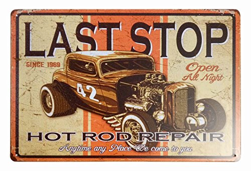 ERLOOD Last Stop Hot Rod Repair Retro Vintage Decor Metal Tin Sign 12 X 8 Inches