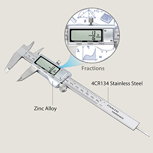 Digital Vernier Caliper Neoteck 150mm/6Inch Stainless Steel Electronic Caliper Fractions/Inch/Metric Conversion Measuring Tool for Length Width Depth Inner Diameter Outer Diameter