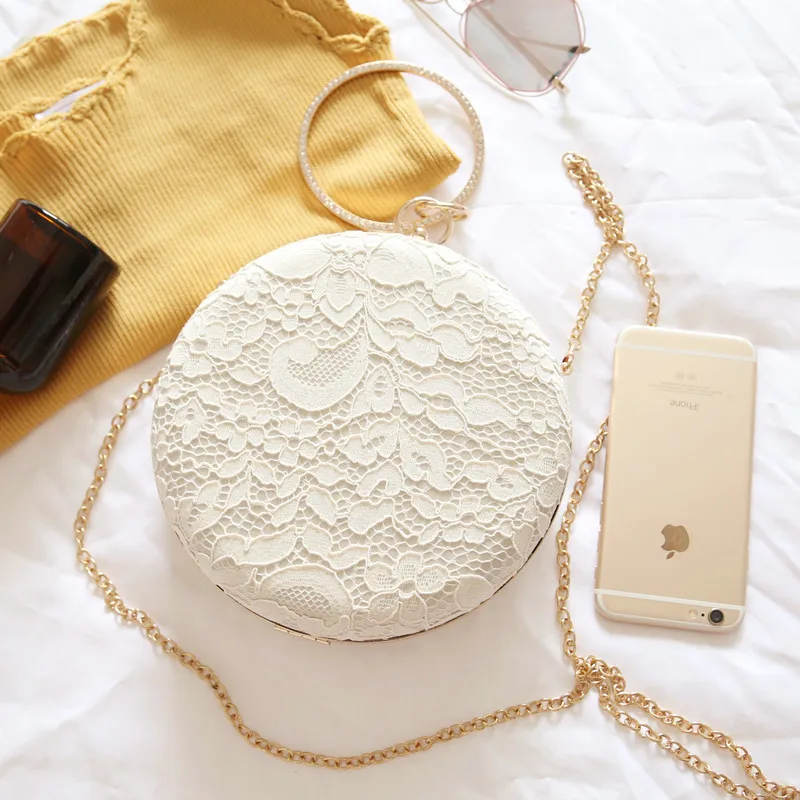 Features 1:Round Circular Women Fashion Day Clutches Wristlets Handbag Purse