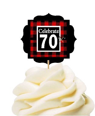 70th Birthday / Anniversary LumberJack Buffalo Plaid Novelty Cupcake Decoration Toppers / Picks -12ct