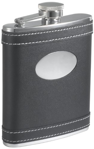 - Wrapped around its strong and sturdy stainless steel body, this handsome genuine black leather bonded flask is to die for with its dark looks