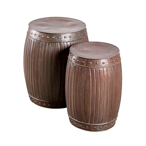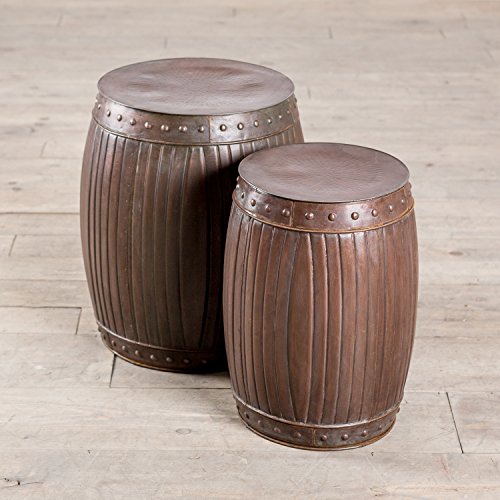-. Brand : Zallzo -. Color : Copper -. Department : unisex-child -. EAN : 0705322438073 -. Feature : Includes Two Barrels / Can be used as end tables or stools / Handmade in India / Large Barrel Dimensions: 20 in. H x 16 in. W x 16 in. D / Small Barrel Dimensions: 18 in. H x 13 in. W x 13 in. D -. Label : Zallzo -. Manufacturer : Zallzo -. Model : ZZ01180 -. MPN : ZZ01180 -. PackageQuantity : 2 -. PartNumber : ZZ01180 -. ProductGroup : Furniture -. ProductTypeName : HOME_FURNITURE_AND_DECOR -. Publisher : Zallzo -. Size : 20 in. H x 16 in. W x 16 in. D -. Studio : Zallzo -. Title : Copper Fluted HANDMADE Round Barrel End Table Stools - Copper (Set of 2) -. UPC : 705322438073