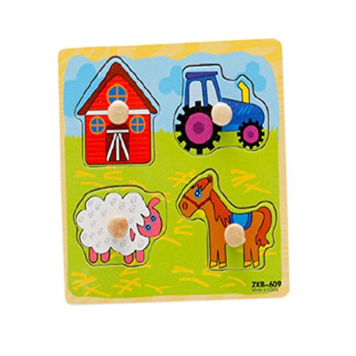 -. Binding : Office Product -. Brand : Panda Superstore -. Feature : Farm wooden pegged puzzles (barn,sheep,horse,truck). / 4 pieces of puzzles; size about 14.8*14.8*0.6cm(5.8*5.8*0.2''). / Recommended Age Range 2 Years. / More colourful would be loved by your kids. / It correctly guides the children's observation and cognitive characteristics of colors, shapes, and animals. -. Label : Panda Superstore -. Manufacturer : Panda Superstore -. MPN : PS-TOY166403011-ADA00025 -. PackageQuantity : 1 -. PartNumber : PS-TOY166403011-ADA00025 -. ProductGroup : Toy -. ProductTypeName : TOYS_AND_GAMES -. Publisher : Panda Superstore -. Studio : Panda Superstore -. Title : Set of 3 Farm Puzzles Wooden Animals Puzzle Age for 2 Years 14.8*14.8CM