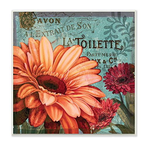 Stupell Home Décor Colorful Daisies with Antique French Backdrop Wall Plaque Art, 12 x 0.5 x 12, Proudly Made in USA