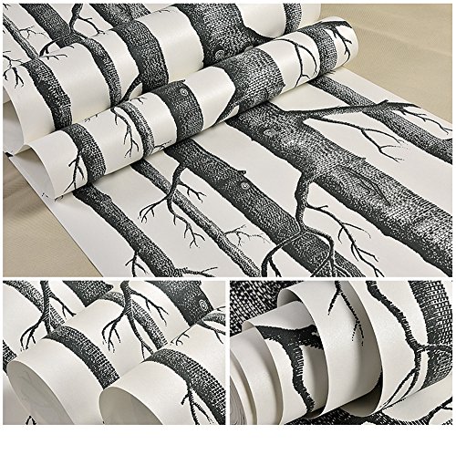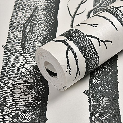 Akea Modern Birch Tree Wallpaper Roll, Black and White Forest Trunk, for Living Room , Bedroom, TV Background etc, Size 20.8inch x 32.8ft, 57 sq.feet