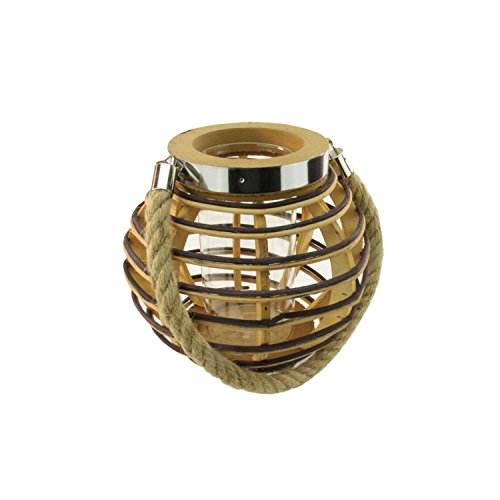 -. Title : 7.5" Rustic Chic Round Rattan Decorative Candle Holder Lantern with Jute Handle
