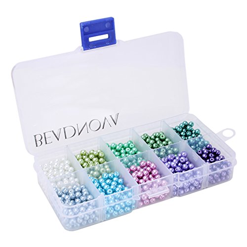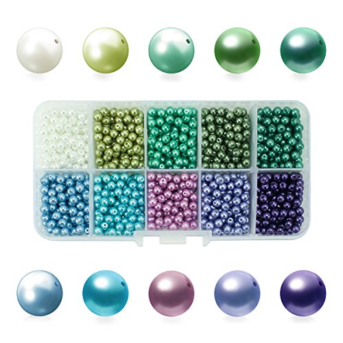 BEADNOVA 4mm 1000pcs Tiny Satin Luster Round Imitation Pearl Glass Beads for Jewelry Making Assorted Color Box Set