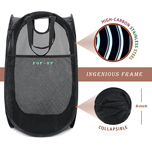 Strong Mesh Pop-up Laundry Hamper, Quality Laundry Basket with Durable Handles Solid bottom High Carbon Steel Frame, Easy to Open and Fold Flat for Storage, Odors & Moisture Proof, Black