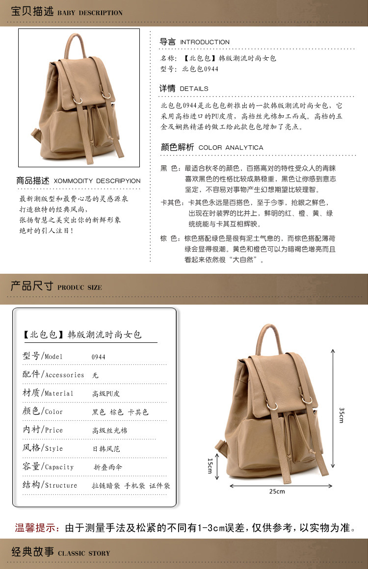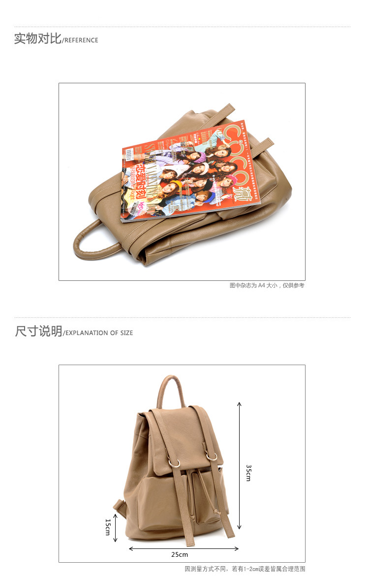 请务必查看包包尺寸(因测量方式不同,存在2-3cm误差属正常现象)