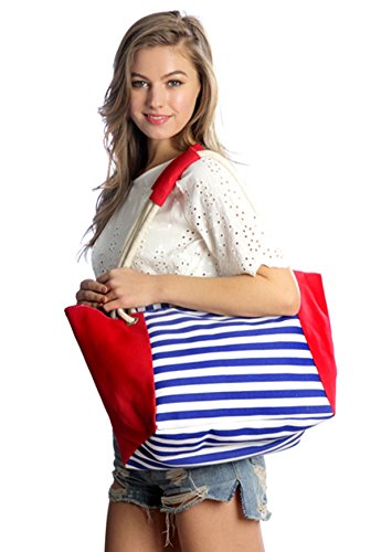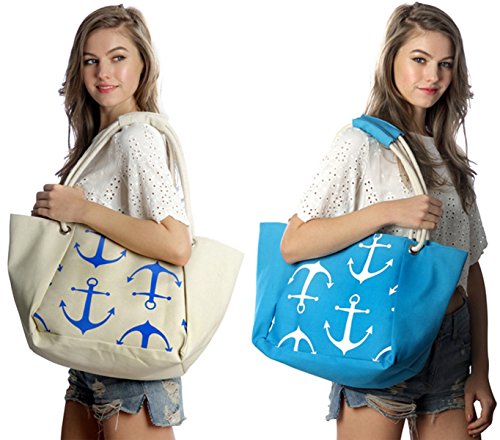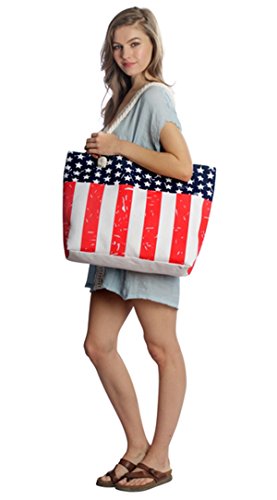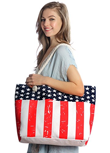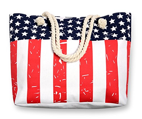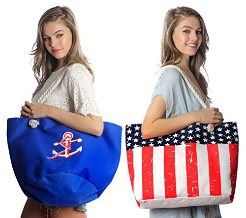 Product Description 1.USA Flag: American Flag Print Oversize Canvas Beach Tote Bag. Bold stripes and stars pattern a textile tote with a slouchy silhouette that makes it perfect for packing full of your everyday essentials. Knotted rope handles finish this bag with a beach vibe. Handbag measures 21" inches side to side. Top to bottom measures 15" inches. Strong canvas material, water resistant 100% cotton lining. 2.Strip Red, 3.Strip Pink: Striped Canvas Beach Bag Tote. This canvas bag features comfy, two rope style shoulder straps with bold stripes and side color panels.Toss your shore glam in this beach tote and head for warmer weather and good times. Handbag measures 21" inches side to side. Top to bottom measures 11.5" inches. Stylish baggage with spacious interior Finished with shoulder strap wraps for added comfort Convenient zipper closure 4.Ivory,5.Turquoise: Blue Canvas Beach Bag Tote With Blue White Anchor. A two-tone anchor is the center attraction on this sturdy, top open tote. A spot on look for long, casual days at the coast. Handbag measures 21" inches side to side. Handbag measures 11.5 inches top to bottom. Contrasting, yet complimentary anchor imprint,Canvas material lends casual style and durability, Roomy for packing essentials, Fully lined interior 6.Anchor Blue: Anchor Print Canvas Beach Tote Bag. A canvas tote with nautical-inspired woven rope handles makes for a chic summer carryall, the perfect baggage when water-bound. Handbag measures 22" inches side to side. Top to bottom measures 14" inches. Strong durable canvas material. Interior is fully lined 0