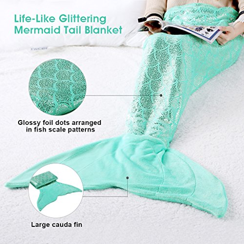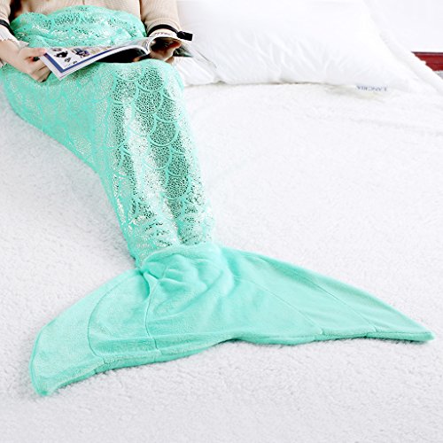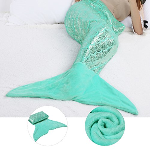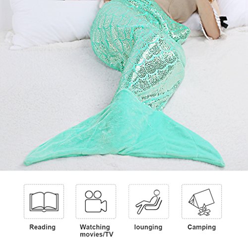 LANGRIA Mermaid Tail Blanket Glittering Flannel Super Soft Cozy Warm Lightweight for Kid Girl Adult All Season (60 x 25 inches, Green)