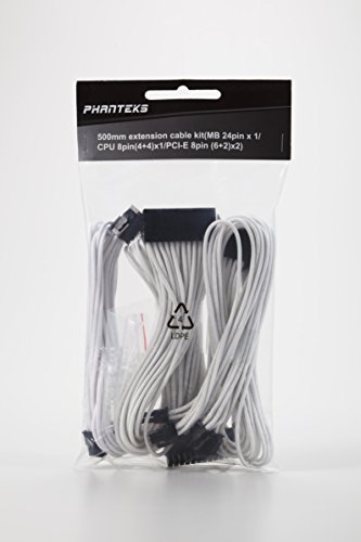 Phanteks 24 Pin/ 8pin (4+4) M/B, 8pin (6+2) PCI-E Extension Cable Kit 500mm Length, White (PH-CB-CMBO_WT)