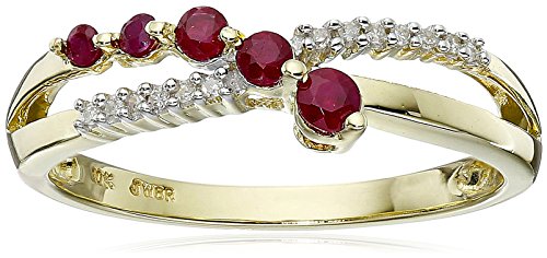 -. Binding : Jewelry -. Brand : Amazon Collection -. Department : womens -. Feature : Twisted band in yellow gold featuring shared-prong diamonds and five round rubies in graduated sizes / Can be resized up or down two sizes. / All our diamond suppliers confirm that they comply with the Kimberley Process to ensure that their diamonds are conflict free. / Imported -. Label : Amazon Curated Collection -. Manufacturer : Amazon Curated Collection -. Model : B000WXXQ9M-Parent -. ProductGroup : Jewelry -. ProductTypeName : FINERING -. Publisher : Amazon Curated Collection -. Studio : Amazon Curated Collection -. Title : 10k Yellow Gold Ruby and Diamond Journey Ring