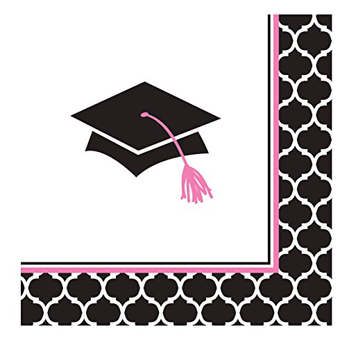 Creative Converting 36 Count Paper Beverage Napkins, Glamorous Grad, Black/White/Pink
