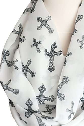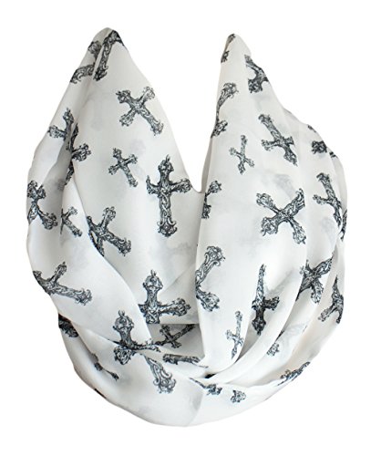 Product DescriptionCross Print Infinity Scarf White Double Layer Chiffon Scarf Loop Scarf, Circle Scarf, spring - fall - summer - winter fashion0