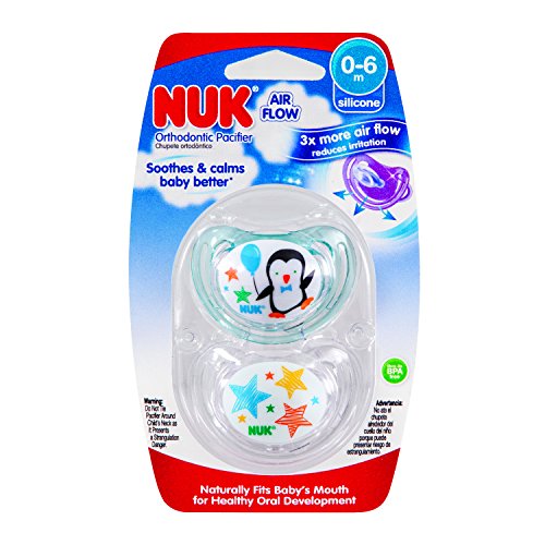 NUK Airflow Orthodontic Pacifier with Penguin Design in Boy Colors, 0-6 Months