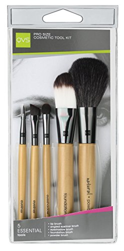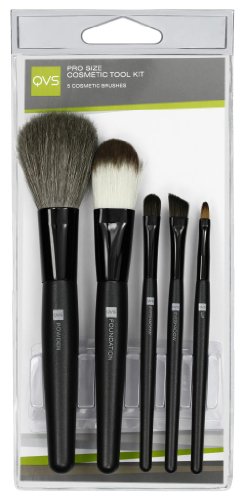 This dependably functional and stylish cosmetic tool kit from QVS accomplishes and maintains flawless make-up everyday. The kit contains: powder brush, foundation brush, eyeshadow brush, eyeshadow/eyeliner brush and lip brush.