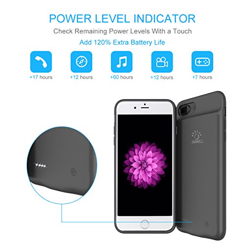 2. ## 1.2 TIMES BATTERY LIFE: SUNWELL iPhone 7 plus Case Battery with built-in lithium polymer , it can simultaneously for increased 17 hours Talk time, 12 hours internet, 12 hours web , 7 hours games. Super Ultra Slim Fashion design without excessive bulk.