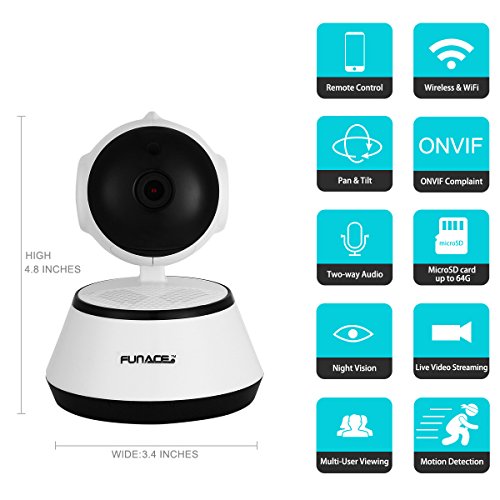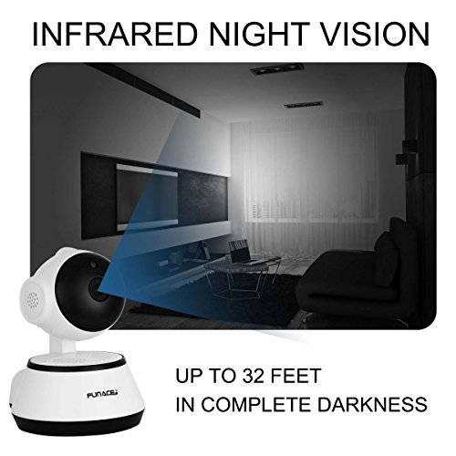 -. Feature : Full HD 1280x720 High Definition WiFi Camera with IR Night Vision (32FT), Record Video via MicroSD Card Slot (up to 64GB), 32 GB Class 10 MicroSD Card Included / Easy Installation: Quick Plug & Play WiFi Setup via iPhone or Android Smartphone (IOS/Android V380 APP Included). No Router/PC or Other Software Required (installation manual available for download below) / Remote Control via Smart Phone: Pan/Tilt: Horizontal 340°; Vertical 90°, 4x Digital Zoom. Camera Supports up to 1000 Simultaneous Remote Viewers / Stream Live/Recorded Video, Two-Way Audio Chat, Capture Screenshots, Receive Motion Detection Push Alerts and Alarm Snapshot Images with Your Phone / Also known as: IP Camera, WiFi Security Cameras, Wireless Webcam, Surveillance & Security Recorder, Pet Camera, Nanny Cam, Baby Monitoring Camera