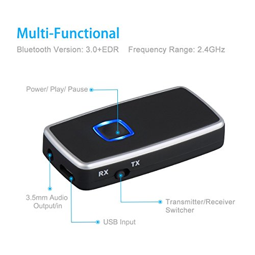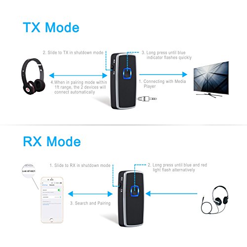Bluetooth-enable all 3.5mm media devices (enable Bluetooth receiving: speakers, headphones and more; enable Bluetooth transmission for: MP3, CD / DVD players, e-readers, TVs and more).