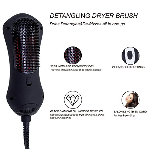 Studio : CHJPRO Publisher : CHJPRO Binding : Misc. Product Description *To turn the Detangle Dry on slide button on the back of the dryer up to the setting you need. There are 2 gears of temperature setting: Low and high. *The inside of the brush will be in red color when the brush on high-temperature. Because the high-temperature will activate the infrared technology. *To turn the dryer off with sliding the button down to the bottom. *Do not use on 100% wet hair(Just finish washing) . It should be used on the half-dry hair(towel dried hair). *Run the brush dryer gently through a section of the hair from root to top. Repeat across the whole of the head until it is tangle free and dry. 0