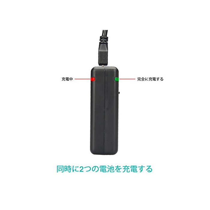 2개의 배터리를 동시에 충전할 수 있습니다.충전 중은 적램프,충전 완료 후에록 램프에 통지.보호 회로:본 제품에는 스쳐 전류 보호,스쳐 충전 방지,스쳐 방전 방지 보호 회로가 내장 되고 있기 때문에 사용 기기에 데미지를 주는 일 없이 안심하고 이용 하실 수 있습니다